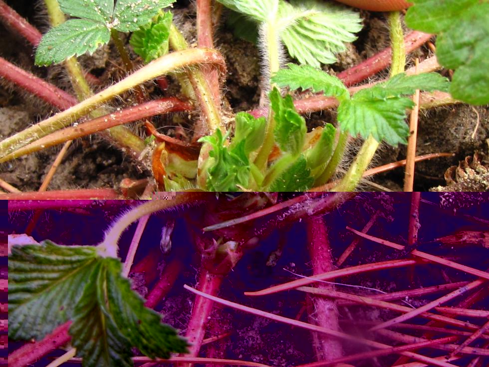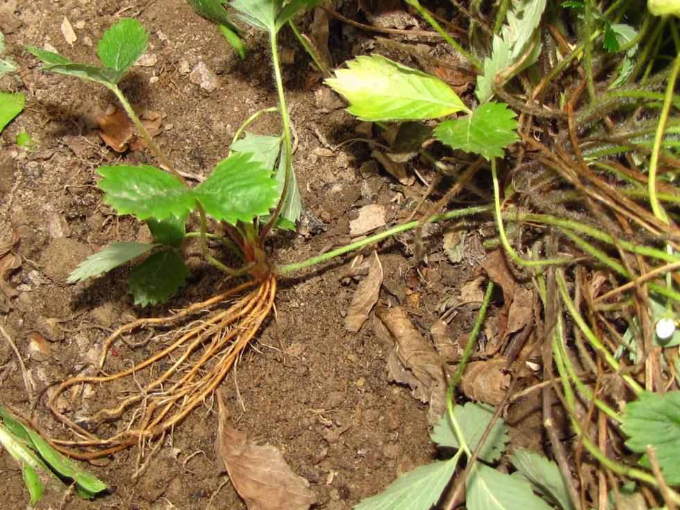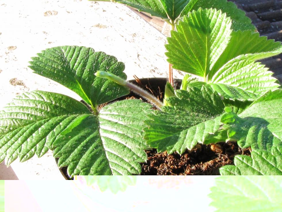 Le piante di Profumata sono belle e forti, le loro foglie bellissime assomigliano alle farfalle Una femmina sta facendo il primo stolone e un maschio sta pensando di fiorire