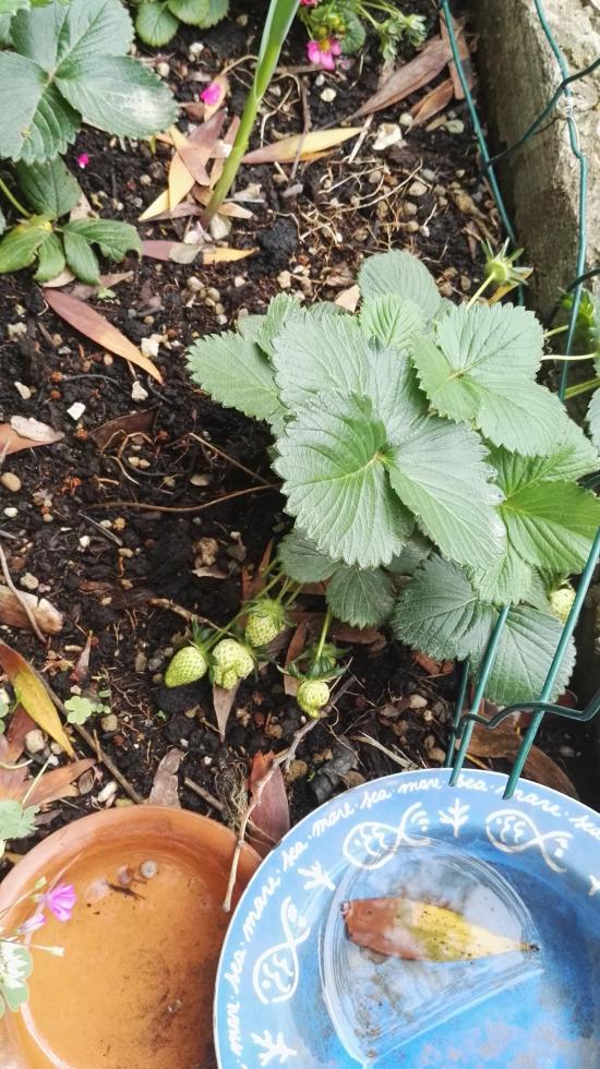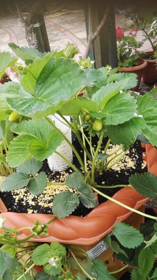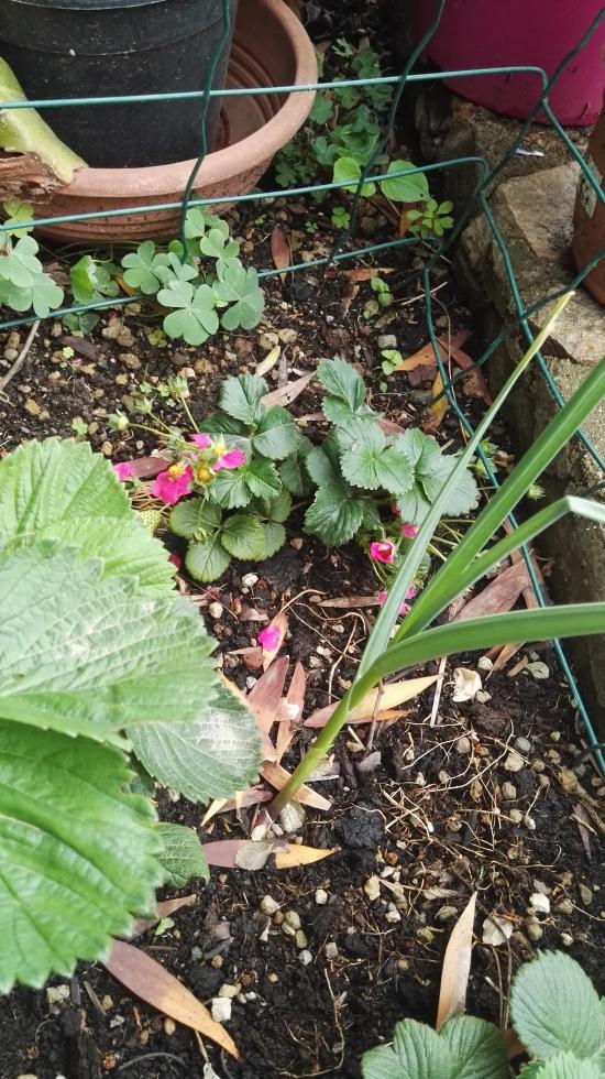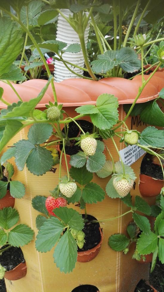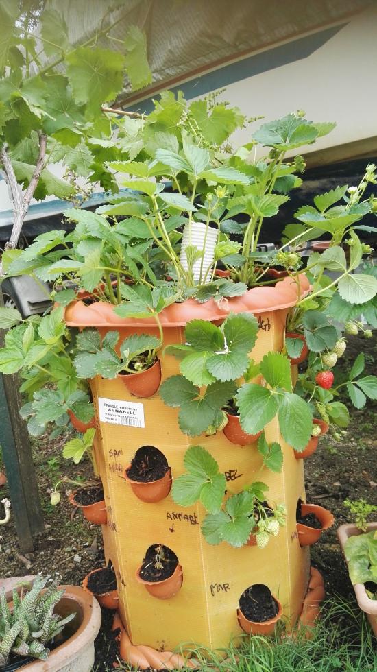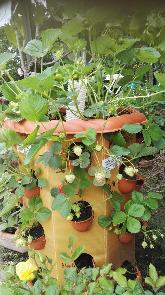Grazie delle foto Poi ci racconterai come si sentono le tue fragole nella fioriera verticale Però io toglierei le piante di Oxalis dal fragoleto.