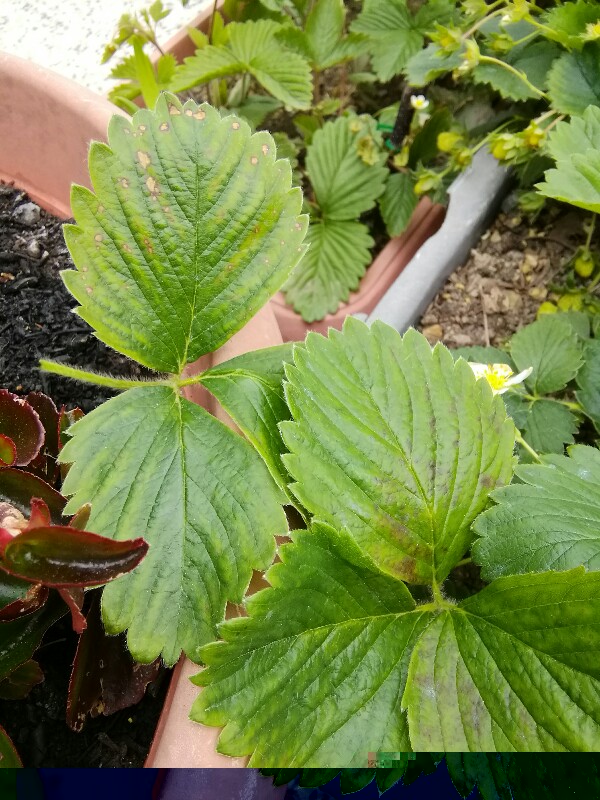 Buongiorno a tutti , qui' a Genova c'è la siamo scampata siamo rimasti a 5 gradi , però stamani volevo chiedervi se mi aiutate con alcune piante di fragola che ho nei vasi e presentano queste macchie , nn saprei che tipo di carenza hanno , cmq ho provveduto a fare una poltiglia di NPK 202020 + ferro+ calcio , insomma ho dopato le mie piante  ...