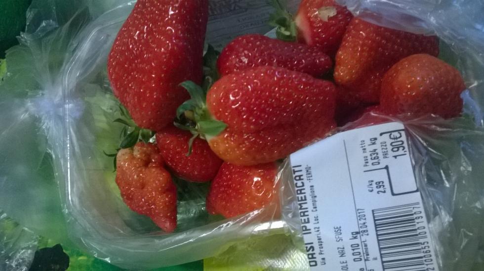 Le mie come detto le hanno asfaltate per bene la settimana scorsa, ho notato che i piccoli frutti sono ora neri e a sorpresa alcune piante hanno tirato fuori dal nulla 10 centimetri di stoloni che ho rimosso ma ho capito che anche sta volta le fragole le devo comprare e infatti...............