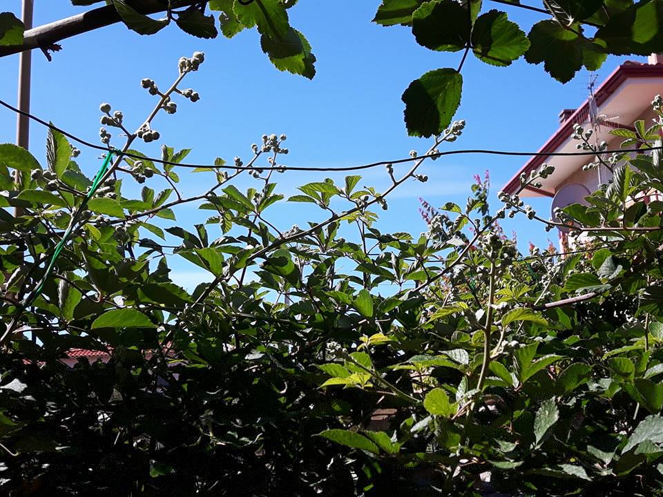 Ilona73 ha scritto: morelamponi2014 ha scritto: Hai detto bene Senza la mora sarda mi sognerei il clima di sottobosco che mi ha creato..il mio giardino perderebbe anche il 50% della sua bellezza.....oramai + del 50% del giardino è "arredato" con la mora sarda............. Il bello è che adesso anche in inverno avrò un giardino.........senza la mora sarda è davvero triste passare dal pieno rigoglio vegetativo primaverile-estivo....alla morte assoluta invernale...con tutte le piante senza foglie......Mentre adesso in inverno rimarranno visibili solo questi pergolati e viali di mora sarda..ancora + visibili, visto che le piante da frutto saranno tutte scheletriche senza foglie......... p.s. edu non affannarti a cercare la pianta.......non esiste in vendita da nessuna parte......e nessuno la possiede  ........altra cosa da non sottovalutare sono le more...dolci e buone con sapore identico a quelle prese in campagna.......ok le tante varietà di more in vendita attualmente, ma mi volete mettere a raffronto il sapore di queste, con quello della mora tradizionale di campagna?? Ilona...ho terminato l'arringa....la parola passa alla corte  Guarda che sono felicissima per la vostra unione  e sono certa che lo sono anche tutti tuoi amici  . A breve fiorisce..adesso che ha gli steli belli aperti si vedono bene tutti i boccioli....ho fatto una foto ma c'è troppa luce solare e le foto non si vedono bene....in serata quando cala il sole ne faccio una + chiara.........