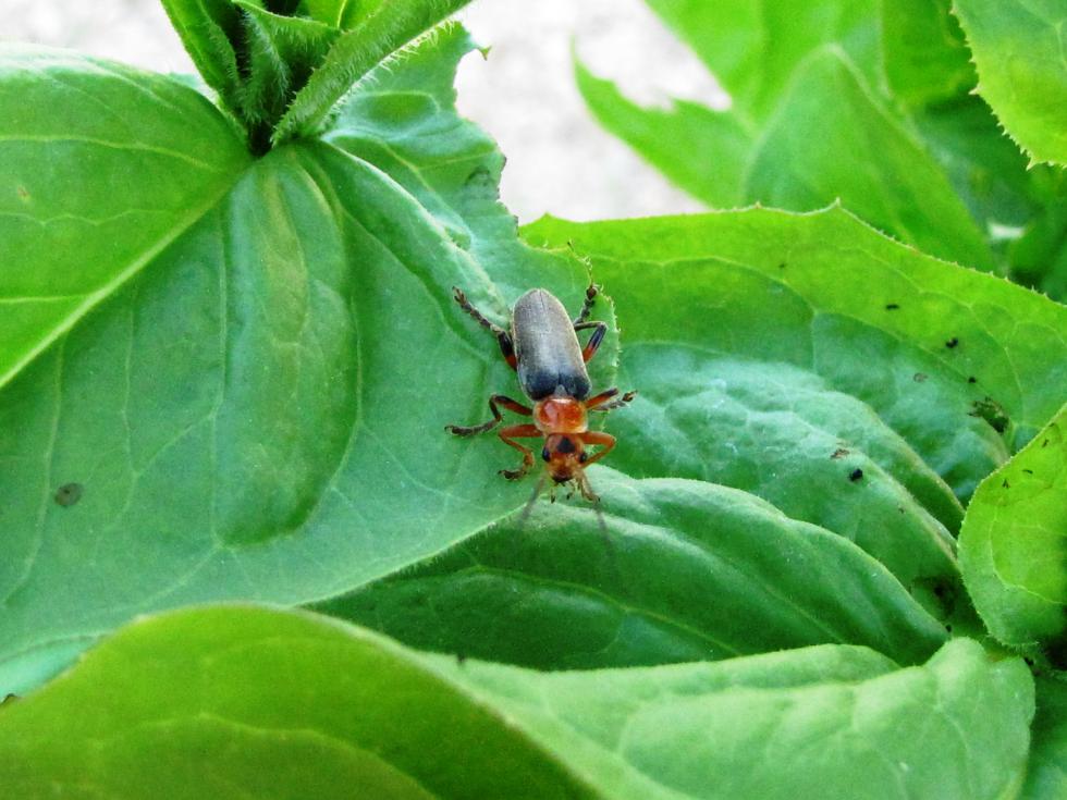 Anche questo insetto ho trovato nel lamponeto e l'ho liberato dal barattolo  - si trova sulle piante da maggio a luglio ed è un predatore di piccoli insetti e le sue larve si nutrono di lumache e lombrichi ( però mi dispiace per i lombrichi  ). Appartiene alla famiglia Cantharidae e si chiama Cantharis livida var.rufipes, è lungo 1-1,5 cm.