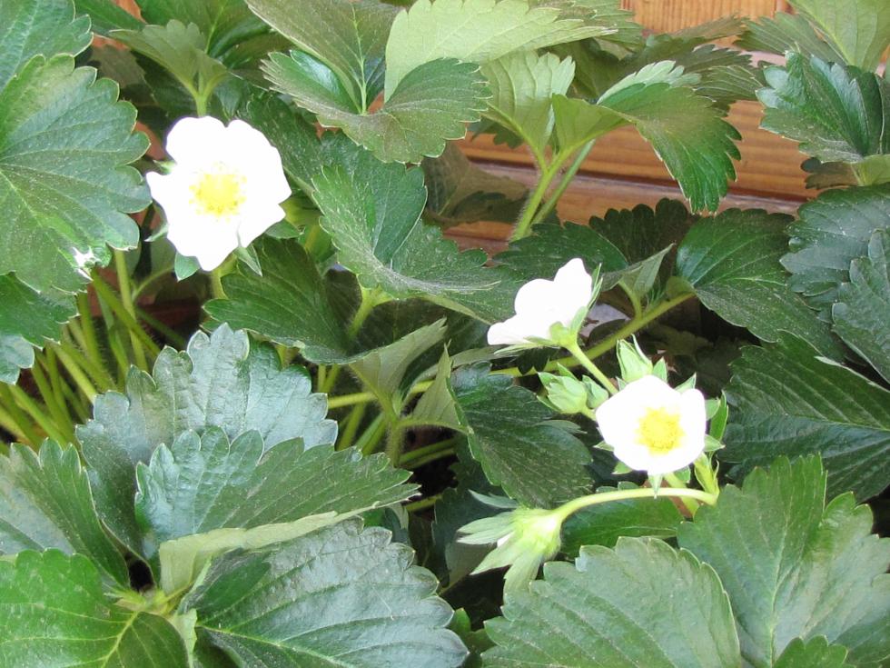Le fragole rifiorenti hanno iniziato la seconda fioritura, invece le fragoline rifiorenti sono sempre in fiore