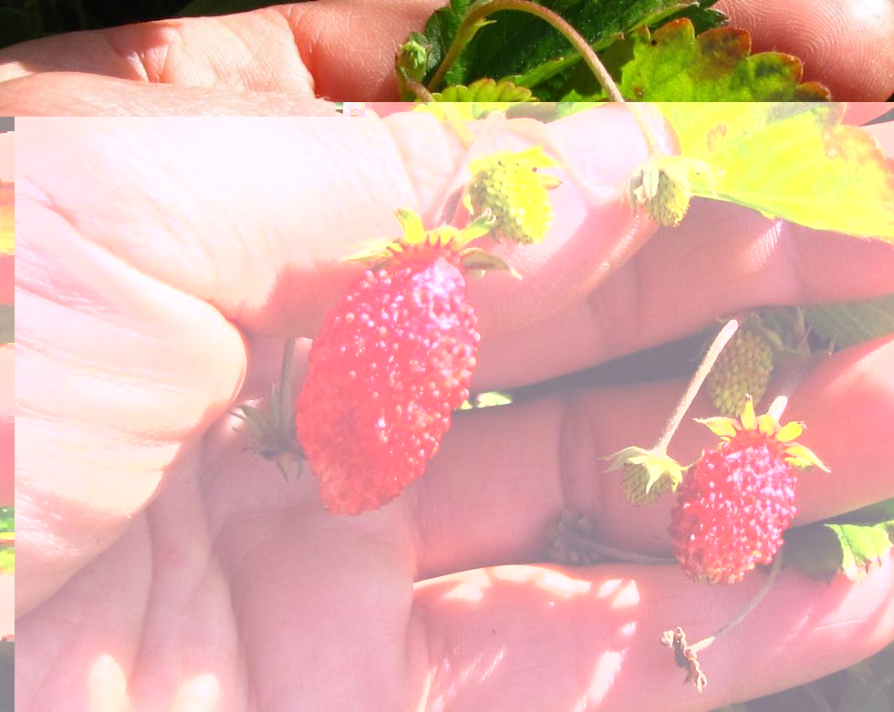 Ho fatto un giretto nel giardino con la macchina fotografica Queste fragoline sono le figlie di Piccina e di White Soul ( le piante sono nate a primavera dai semi che c'erano nei vasi delle piante acquistate ).