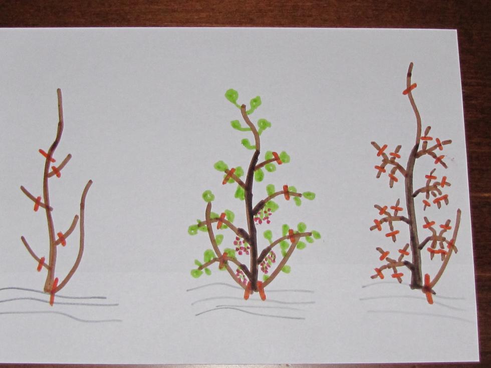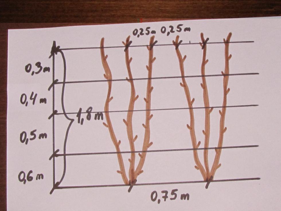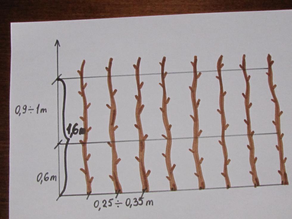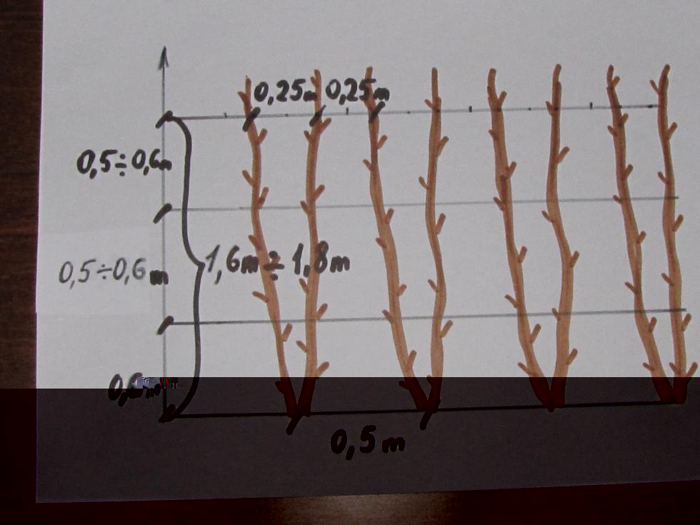 Ragazzi, ho scoperto che mi piacciono i colori... Vogliamo parlare della impostazione del ribes rosso a cordone? In questo caso - occhio alla densità dell'impianto e alle distanze tra le piante e gli assi principali ( chi è più generoso può lasciare 10 cm in più tra le piante per migliorare l'arieggiamento ).