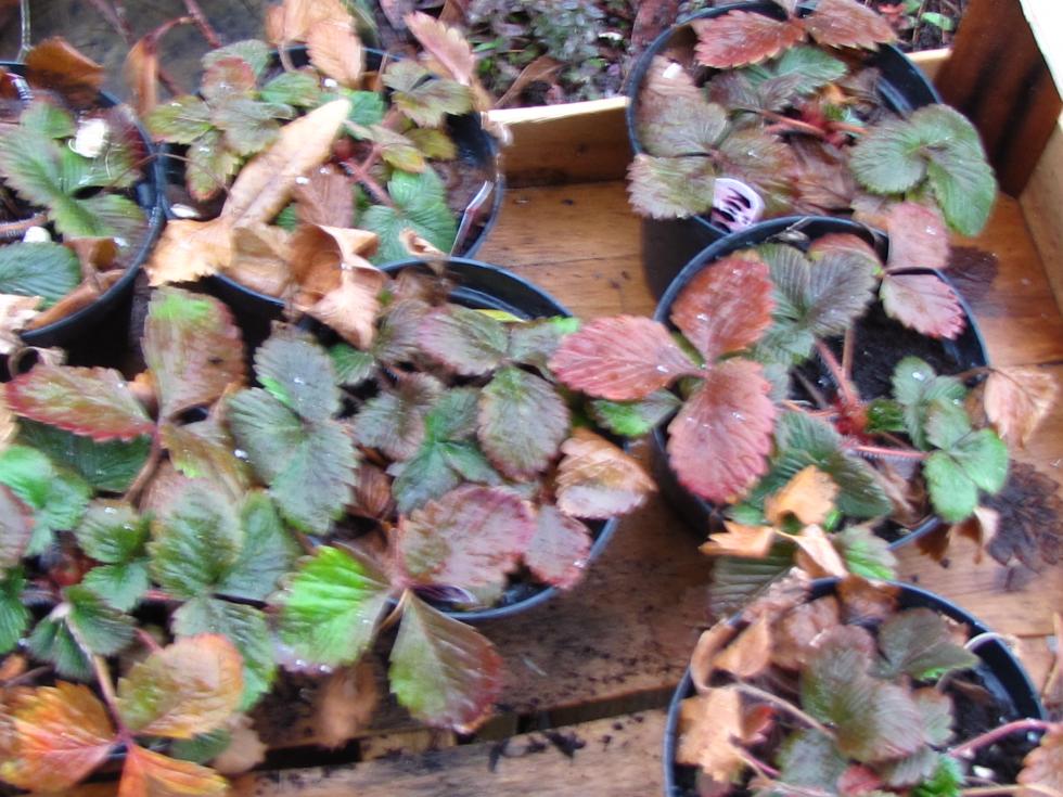 Ho fatto le foto delle mie piante che non ho fatto in tempo di mettere a dimora e sono fuori sotto la pioggia e sotto la neve... anche adesso sta facendo acqua e neve e le foto non sono venute molto bene... sono corsa a casa senza controllarle e non esco più oggi Queste piantine sono le "sorelle" delle alcune fragoline di Marcello