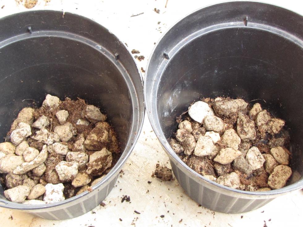 Ho allargato le radici e ho messo dei sassolini di pietra pomice sul fondo dei vasi da 14 cm ( i vasi precedenti erano da 10 )
