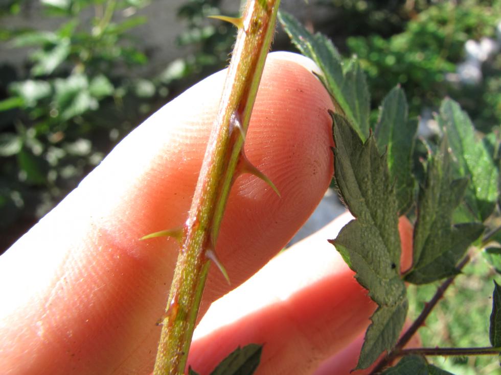 Allora... rubus laciniatus Thornless Evergreen - la mutazione naturale di una varietà molto spinosa "Evergreen"... pianta molto forte, le darei 1,5 - 2 metri... il suo fogliame è molto bello, le bacche non grandi, dal sapore intenso e abbastanza dolce a maturità completa, però... contengono dei semini piuttosto grandi e fastidiosi. Attenzione a non ferire le radici durante la lavorazione del terreno - dalle radici nasceranno dei polloni molto spinescenti e la pianta matura può anche generare dei tralci con le spine... non spesso, ma ti può sorprendere all'improvviso... e... Ahi, che dolore...