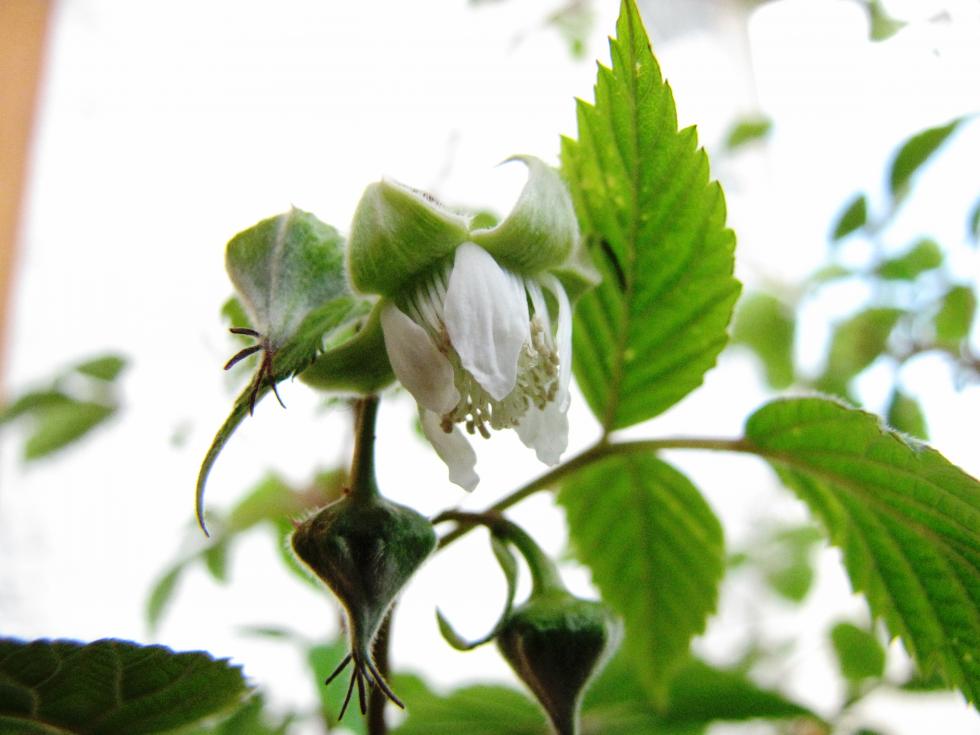 Il primo fiore del lampone unifero che coltivo in vaso sul balcone :)