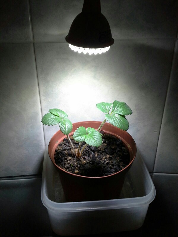 Io ho portato dentro la mia fragolina perché ho visto delle infiorescenze, presuppongo che la pianta è a giorno neutro e dopo due giorni al caldo si vedono già i petali bianchi.