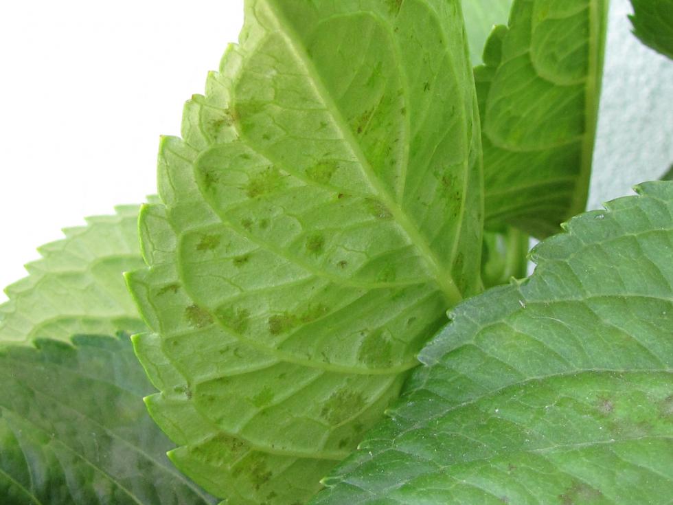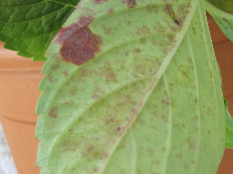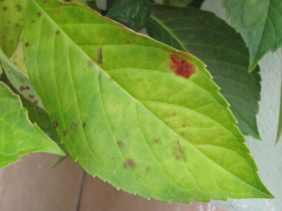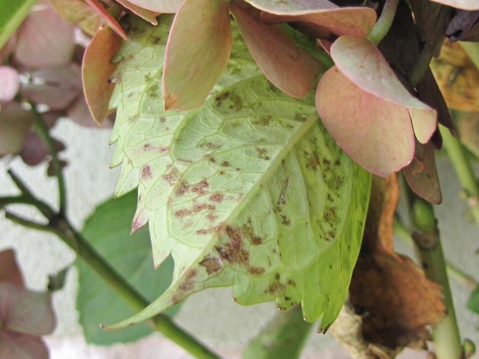 Ch'aggia a fa', nun son bono coi mirtilli Però le mie ortensie non ce l'hanno quelle macchie ... mi danno l'impressione di una qualche fisiopatia e nell'ultima foto sembra inizino con un aspetto edemoso.