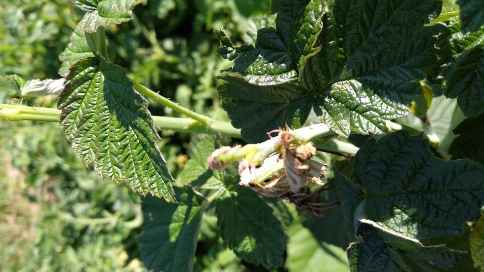 Ho un problema con un piccolo impianto di lamponi fatto in primavera. I nuovi polloni crescono ma gli apici seccano. Non di tutte le piante. Le piante di heritage stanno fiorendo senza problemi e le piante mi sembrano in salute. Le altre che non so di che varietà siano ( rifiorenti comunque) hanno il difetto della foto