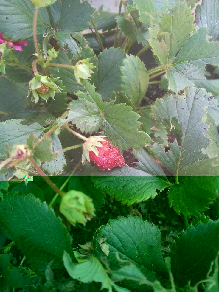 Le foglie potrebbe essere oziorinco.la foto della fragola non é nitida.riesci a postarne altre?