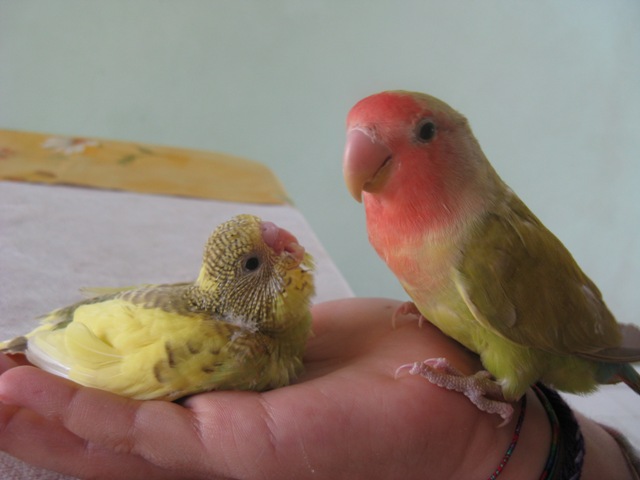 Ottio!!! che meraviglia sono carinissimi!! anche i pulli!!! *-* Complimenti! ma ne hai tanti! Una bellissima coppia di calopsite ancestrali, ti depongono? Hai tantissimi inseparabili!! e tanti tipi di cocorite! Da quanto tempo gli allevi? ciao ciao