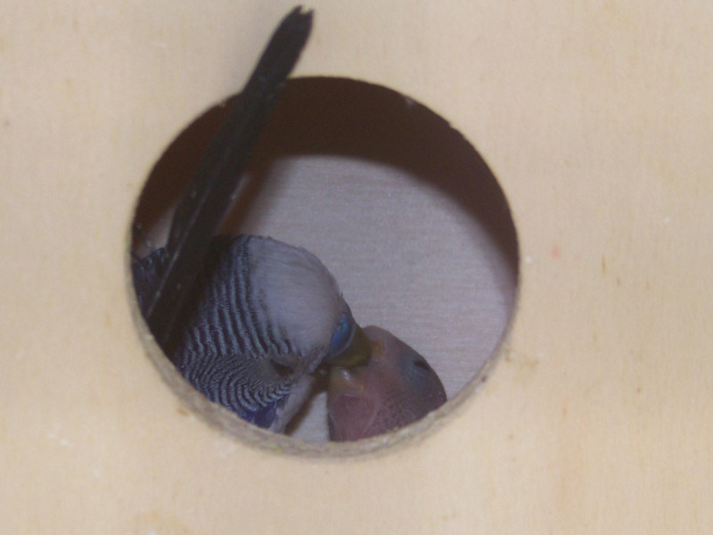 Ho provveduto a inserire un nido circa un due mesi, la femmina blu aveva cominciato a covare, ma le 2 uova sono state tirate fuori dal nido e rotte.