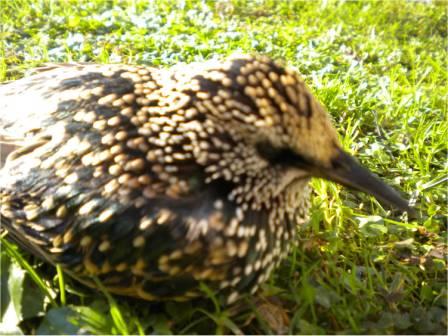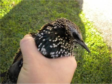 Curcuma ha ragione, storno, e anche il resto, è intelligente e instaura un rapporto con l'uomo, dovresti verificare perché non vola, molti cadono perché colpiti da pallini in zone non motali ma lesive, milioni di uccelli fanno questa fine tutti gli anni, saluti, Mario