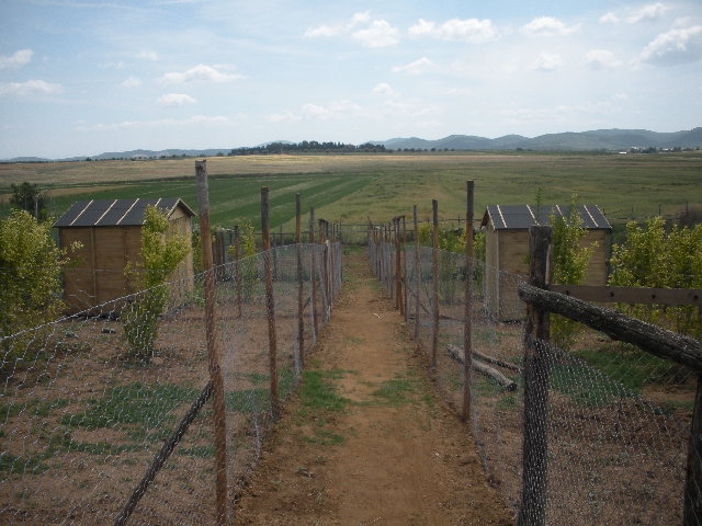 Siamo quasi giunti al termine dei lavori  dopo qualche settimana si cominciano a vedere i primi risultati  !! Area di 1080 MQ abbiamo recintato con rete 50 cm sotto terra e 2 metri sopra....dentro a questa area abbiamo creato un corridoio centrale e 8 recinti-pollai 3 a destra, 3 a sinistra e 2 in fondo al corridoio con rete di 150 cm.....ognuno con il proprio ingresso dal corridoio. Come ricovero abbiamo messo le casette in legno in mezzo alla ricenzione che divide i pollai, ogni casetta è stata tramezzata in 2 sempre con rete da 150, in modo da poter avere una casetta per 2 pollai. Nei 2 recinti in fondo al corridoio nessuna casetta, visto che ci andranno oche e anatre ma solo dei grandi ombreggiandi con canne di bambu e sono stati piantati degli alberi da frutto, nella speranza che crescano e facciano la loro figura. Appena verranno fatte le piscine per i 2 pollai delle oche e anatre poserò le foto......al momento mi sento realizzato per quello che è stato fatto. Naturalmente mancano ancora tutti i piccoli dettagli, che faremo alla fine