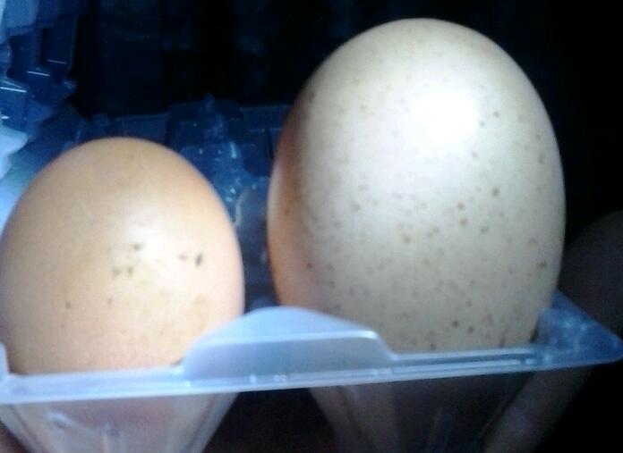 Ciao Le mie sono galline agricole Questa mezza gallina fa diciamo uova enormi ogni giorno rispetto alle altre,ma ieri....è abnorme