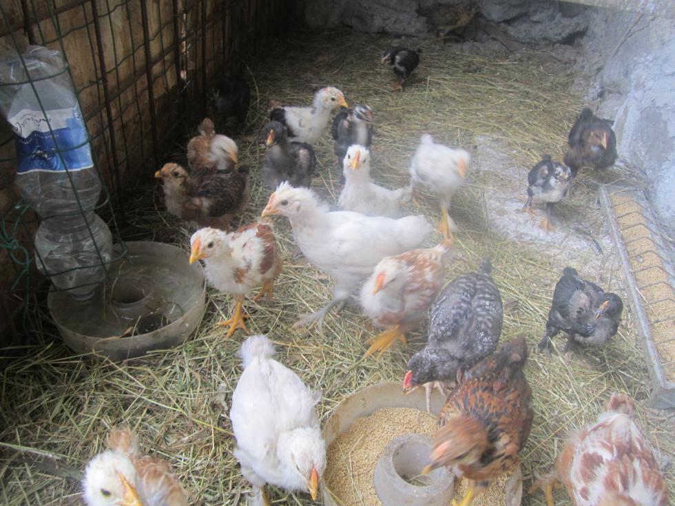 questi sono i miei ibridi a23 giorni.gentilmente chi sa dirmi che razza e' il gallo? grazie per le risposte Takj 13,Maricri, Alice1976,MagnumP,e tutti gli altri.