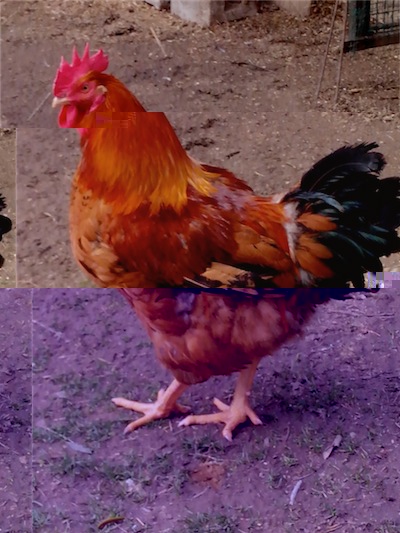 L'idea sarebbe quella di incubare uova provenienti da galline comuni "commerciali" e questo bel gallo novello (5,5 kg) di razza sconosciuta ma preso per la sua imponenza.