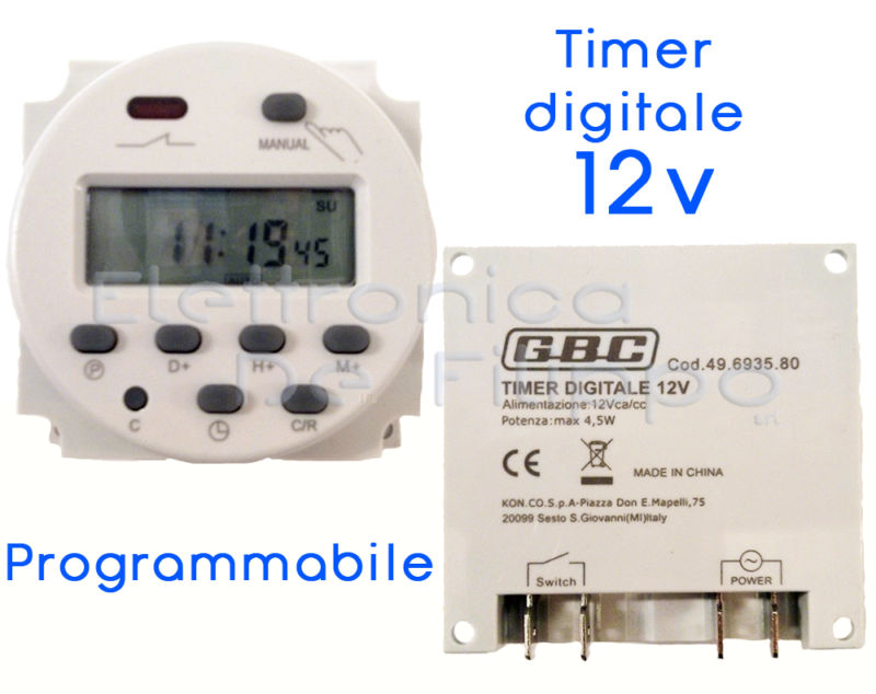 Ragazzi ho un vecchio trapano a batteria che ormai non utilizzavo più e per puro caso al negozio di elettronica ho trovato un timer digitale ad un prezzo modico. Ho anche un pannello solare e delle batterie auto quindi ho preso il timer e mi sono cimentato nel progetto elettrico ma non ne riesco a venire a capo. Chi mi aiuta Il timer è questo Allegato: