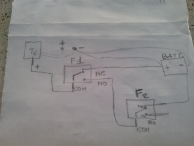Anche questo non va perché farebbe chiusura ed apertura automatica. Il temporizzatore scatta f1 alimente il motore f2 da nc diventa na, la ghigliottina fa scattare f1 da na a nc che alimenta il circuito che inverte la marcia del motore fino a che f2 non chiude tutto.