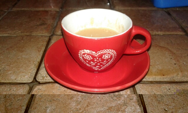 Che belle le piastrelline in cotto antichizzato... si intonano bene col rosso della tazzina... buon caffe'.