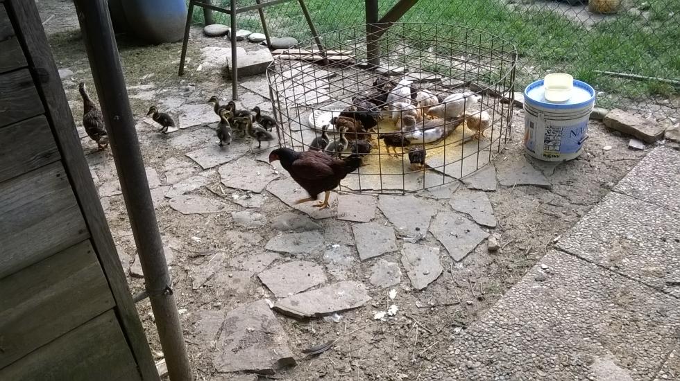 AuroraM ha scritto: Ma scherzi a parte, Tisio... una soluzione come la tua sarebbe quella che preferirei, anche come "filosofia", visto che non ho pretese di allevamento in purezza. Ma di fatto non trovi problemi pratici a mettere insieme da subito polletti di tutti i sessi e di tutte le razze e dimensioni? Non accadono delle stragi???  alcune foto di pacifica convivenza, germani reali ,anatra muta , pulcinotti di varie covate