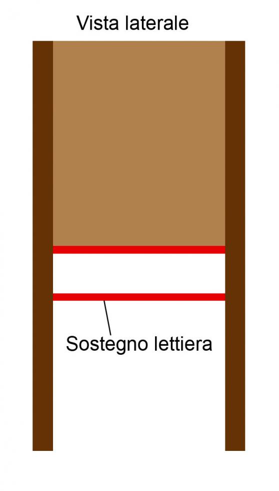 Ecco i disegni e una foto dei supporti per la lettiera