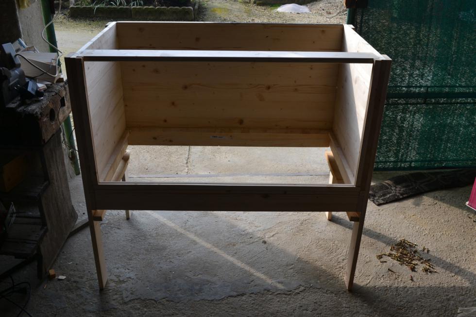 Grazie FrancescoLi La guida per il vetro sintetico è costituita da una base di legno larga 4cm e da 2 bordi di spessore 0,7 cm in modo da lasciare uno spazio di 5/6 mm per il vetro (il mio è spesso 4mm). La base con la guida è uno dei lati lunghi del telaio del posatoio.