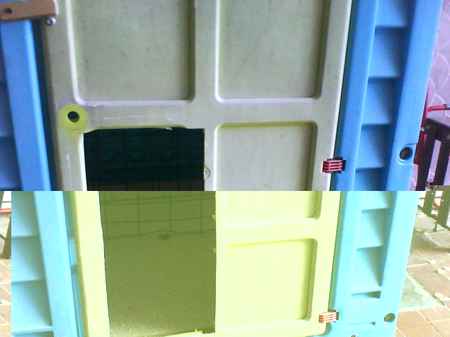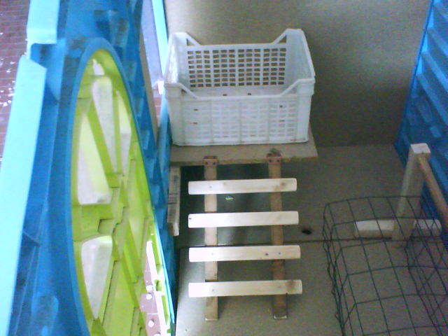 poi ne mettero' altre dettagliate nei particolari...dentro abbiamo realizzato la cova...con scaletta....posatoi con griglia sotto.....