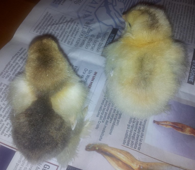 michelestaffo ha scritto:Ciao ragazzi esperti, vi metto due foto dei pulcini di brahma nati dal maschio di brahma di tomtom, vediamo se riuscite a scoprirè la colorazione che avranno da grande.