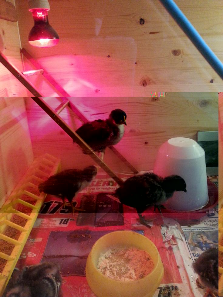 Bgiorno a tutti, non trovo in nessuna agraria il mangime primo periodo, quindi continuo a macinare il secondo periodo e lo mangiano Sembrano felici e sani e gli ho fatto il mini-posatoio che sembrano apprezzare Hanno 14 gg e saltano e corrono, gli ho dato anche il primo uovo sodo e insalatina da mangiare e hanno gradito