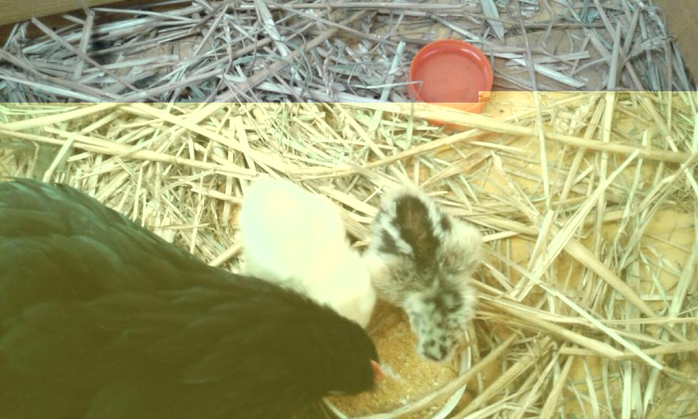 Comunque le due chioccette hanno continuato ad accudire pulcini e uova fino a un paio d'ore fa, ma ora sono scesa a controllare e ho visto che Louise ha completamente abbandonato le uova perché i pulcini cominciano ad andare in giro a mangiare. La cocincina, invece, le covava ancora, ma i suoi due pulcini sono nati da diversi giorni ed è giusto che si senta libera di seguirli. Perciò ho preso la decisione di togliere tutte le uova, non senza grande rammarico, e di metterle in incubatrice. Devo dire che da una speratura veloce, le uova della cocincina hanno ancora tutti pulcini vivi e alcuni pigolanti, quelle che aveva Louise mi sembra di no.