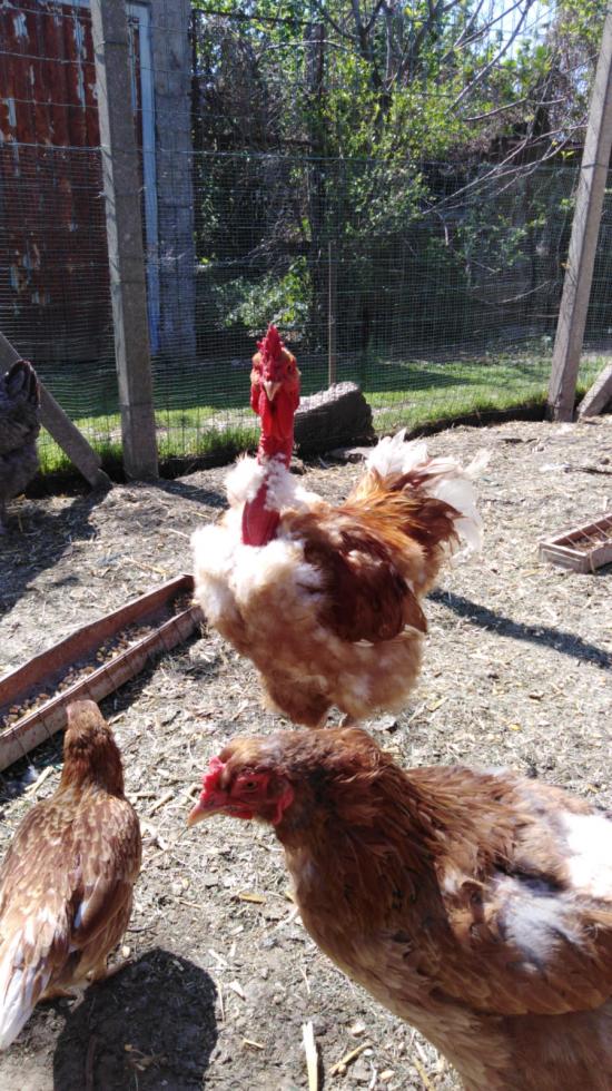 Questo gallo e figlio di una collo nudo commerciale e di un gallo Brahma perniciato