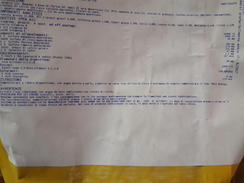 Lo so che dovrebbero essere diversi, invece in questa agraria sono uguali. Solo che il primo periodo è sbriciolato e il secondo è in pellet. Hanno entrambi il 20% di proteine. Non ho il sacco del secondo periodo, ma ricordo che l'hanno scorso avevo notato questa cosa e quest'anno me l'ha riconfermata il venditore. Quello con il 22% è un altro mangime ancora che un allevatore della zona mi ha consigliato di dare alle galline durante la muta e io lo do un po' anche ai pulcini nel primo mese. Non ho ancora trovato il mangime ideale e questo è il migliore nelle vicinanze. Addirittura 30% di proteine per i tacchini? Praticamente la percentuale della soia pura! Mi sa che devo andare a studiare e fare ancora un po' di ricerche.