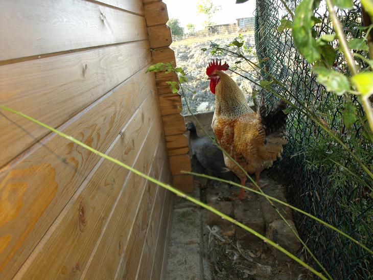 Per quanto riguarda "la coppia", la gallina e il gallo, quando li separo, restano a guardarsi e a parlarsi attraverso la rete. Sarà una fissazione mia, ma addirittura il gallo resta immediatamente fuori dal pollaio e non si allontana se la galina la lascio dentro.