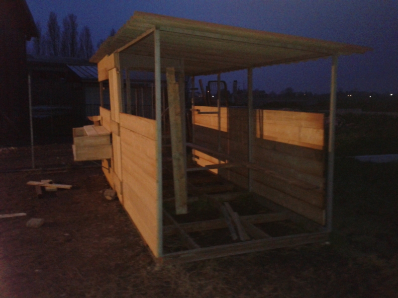 Work in progress... A questo punto avrei bisogno di un consiglio: lo spazio che si crea tra l'ondulina e il montante superiore della struttura come potrei tamponarlo, per non trovarmi brutte sorprese una volta inseriti gli animali?