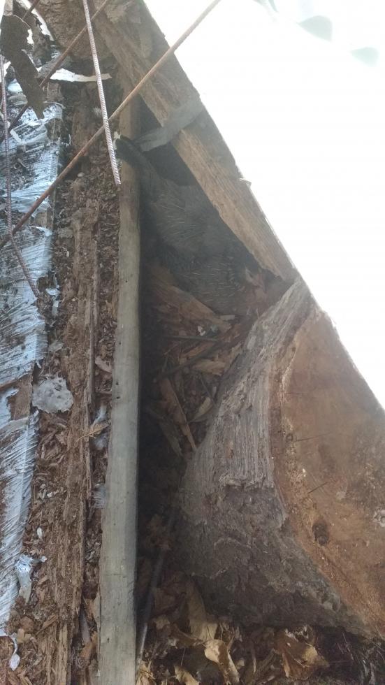 La gallinella nella foto, sorella di un altra che ha già pulcini al seguito, quindi ottima chioccia, ha deciso di covare in una mia tettoia nascosta tra le cianfrusaglie.