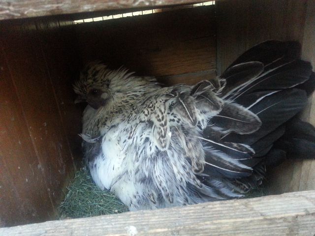 ...questa è sorella dell'altra che sta già covando.....ora anche lei vuole covare, mentre la terza "sorella", per ora niente! Di che razza sono?
