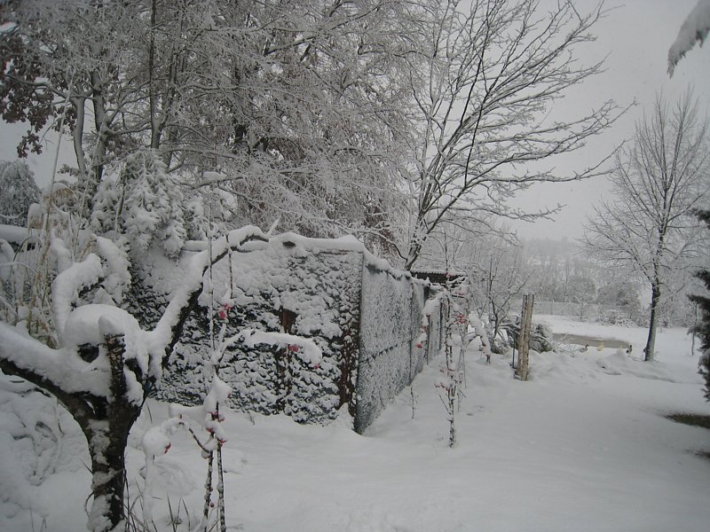 arrivo un po' in ritardo (sono rimasta bloccata a roma da venerdì) e le foto le ha scattate mio marito. Ora va meglio perchè la neve è stata tolta almeno dalla copertura superiore che rischiava di sfondarsi. Se avessi visto i miei recinti in queste condizioni penso che sarei rimasta muta per lo shock chissà quante ore