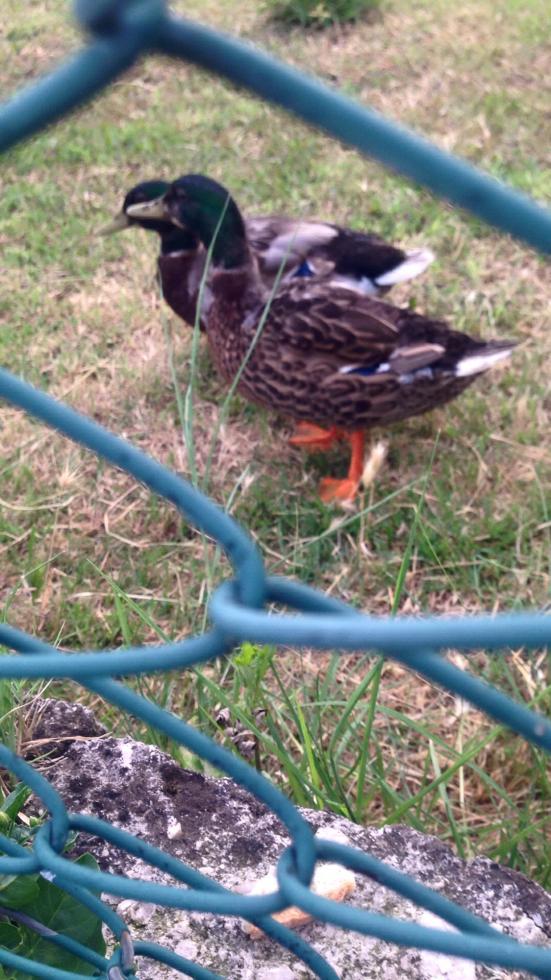 Praticamente questi Germani hanno più di un anno ed entrambi avevano le piume da Germano reale maschio insomma, ora questo qua sta diventando con il piumaggio femminile..