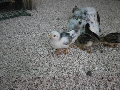 Allora da qualche giorno vedevo una gallinella (mericanella) passare più tempo nei nidi di deposizione e subito grazie all'aiuto del forum capii che stava per acchiocciarsi...quindi dopo aver posizionato un uovo finto la lascia fare attendendo con ansia il fatidico giorno in cui si sarebbe messa a covare definitivamente. Quando si è messa a covare definitivamente, ho spostato la cassetta-nido e ho isolato la gallina per evitare che altre componenti del pollaio le d'assero fastidio deponendo uva nel nido!!! Quindi ho posizionato vicino al nido una mangiatoia e un abbeveratoio, prima di incorrere in spiacevoli danni, ho passato la gallina con un antiparassitario per evitare che acari e pidocchi me la ridussero in fin di vita....infatti in estate con il caldo la paglia e fieno del nido sporcato da qualche deiezione della gallina diventa ottimo rifugio per parassiti! Così ho aspettato 21 giorni quando si sentirono inaspettati i primi pigolii....fin quando il giorno dopo mamma è uscita dal nido con i 5 pulcini dietro ecco qualche foto !! Grazie Stefano.....che carina la chioccia e....I PULCINIiiiii che sbucano da sotto....troppo forti.... certo....se rileggi....  ...................deponendo UVA nel nido  t'immagini.......faresti soldi.......!!!!!! comunque grazie Silvia......ma dalle cassette....i pulcini....si buttano di sotto x uscire???? silvia