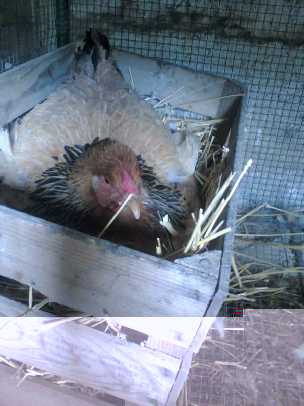 la prima una brahma in cova che per adesso ha 10 uova di fagiano e tra 3 giorni aggiungo uova di galline, mentre la seconda una ibrida di cocincina nana con 17 uova di nane