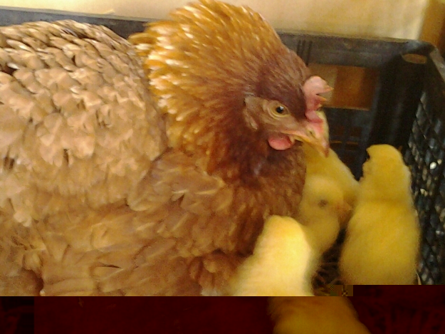 Ecco la mia bravissima chioccia con alcuni dei suoi pulcini. Anche adesso che sono nati, non si schioda dal covo mai. E' veramente una mamma eccezionale......e pensare che non dovrebbe avere l'istinto della cova...se non erro infatti dovrebbe essere una isa, o sbaglio? Quando posso metterla fuori dall'attuale covo sonocon i suoi piccoli? Grazie. Ciao