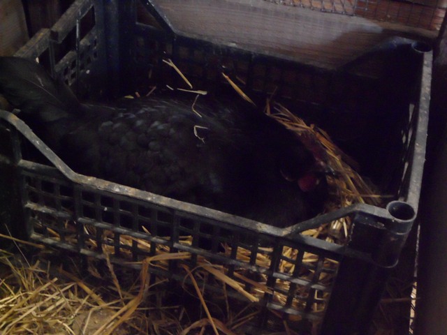 Intanto alla papera ho tolto l'incarico, rispedendola nel pollaio assieme ai suoi 4 infanti. Inserimento senza problemi: non sa covare, ma come tutrice dà il meglio, tenendo alla larga chiunque gallo compreso.