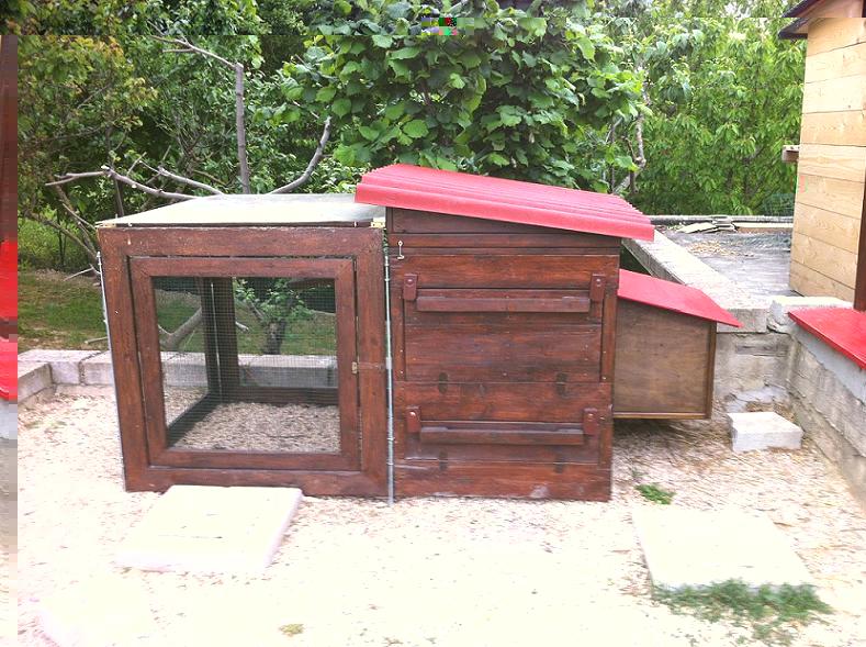 Sono riuscito finalmente a procurarmi due nanette (di pura razza bastarda  ) che a detta dell'allevatore che me le ha cedute si acchiocceranno sicuramente  . Quella delle chiocce è per me una esperienza nuova, a parte qualche reminescenza del pollaio del nonno, sono sempre andato di incubatrice. Ora ho preparato loro un pollaietto per ricovero notturno (100cmLx80cmPx110cmH) con nido esterno (60cmx40cm) e primo recinto (100cmx100cm) anche se comunque sono tutto il giorno libere al pascolo con le altre (anche se in disparte visto che le altre non sono molto socievoli) ma tanto il pascolo è abbondante per tutte. All'inizio toglievo le uova dal nido e ne mettevo di finte ma visto che oramai sono 3 settimane e non vedo risultati sto lasciando loro nel nido le uova (ne hanno 7 al momento). Il pollaietto è questo in foto: all'interno c'è il posatoio a cassetta che tiro fuori dallo sportello grande che si vede e la mangiatoia con l'acqua che tiro fuori dallo sportello più piccolo in basso. Lateralmente il nido esterno (diviso internamente in 2 nidi 30x40 da un separatore alto solo una decina di cm e loro le uova le stanno deponendo sempre e soltanto in un solo nido) con 2 sportellini sul retro per prelevare le uova ed il coperchio apribile per la pulizia. Di dubbi su come gestire una prossima covata ne ho tanti ma quello che più mi preoccupa è come gestire la chioccia: la posso lasciare nel nido a covare con la compagna che abita lo stesso pollaio o devo necessariamente togliere l'altra? e poi conviene che il nido (60x40cm) lo tappo con una rete mettendole dentro acqua e cibo per evitare che l'altra vada a disturbarla per deporre o la lascio aperta? qualcuno di voi puo postare qualche foto specifica dei recinti con i quali trattenete le chiocce almeno riesco a rendermi conto? Grazie