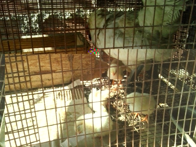 Oggi mentre gli mettevo la pappa e l'acqua si è infilata dentro l'altra gallinella e si è messa pure lei sul nido, l'ho dovuta togliere di peso ed è stata tutto il tempo a cercare di rientrare nella gabbia