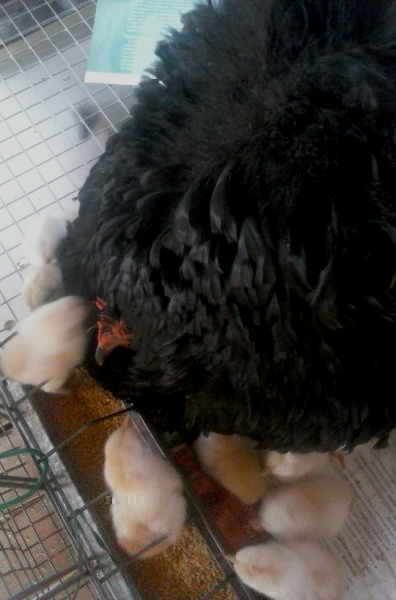 ecco la mia Cocincina nana riccia ex in sciopero della fame, finalmente insieme ai suoi piccoli! è tutto bene quel che finisce bene