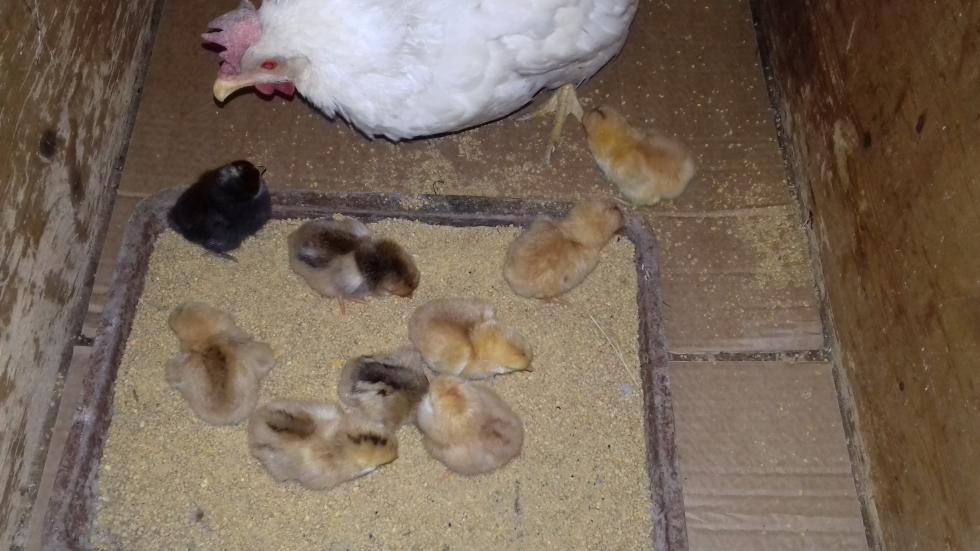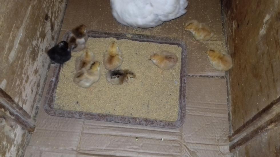 Agiornamento delle uova abbandonate dalla chioccia, messe in incubatrice e poi sotto un altra chioccia: -7 uova -2 nati ibridi neri con qualche punto bianco e zampe bicolore(per il momento non ho foto) -1 uovo quasi aperto -4 uova che si muovono continuamente